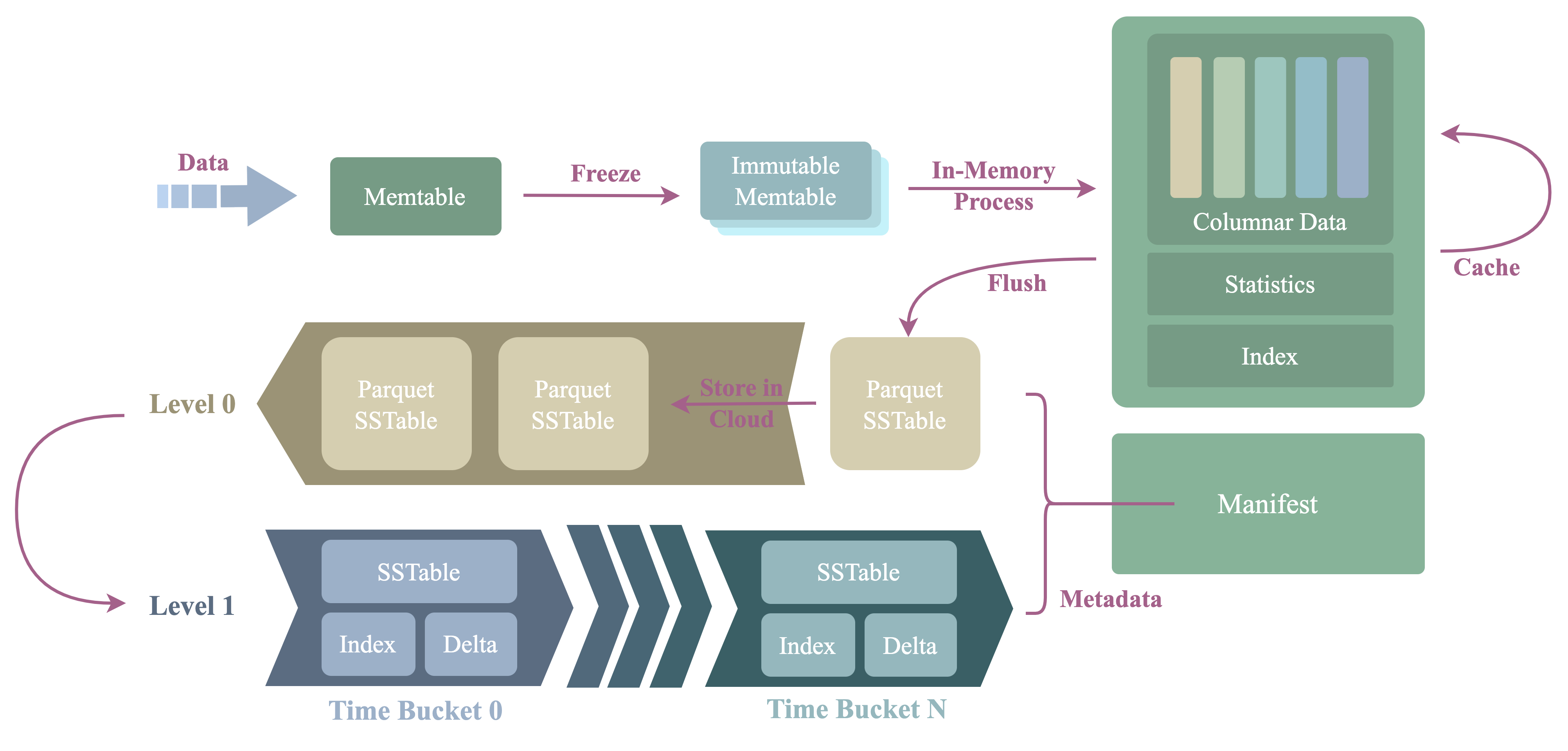 The architecture is the same as a traditional LSMT engine: